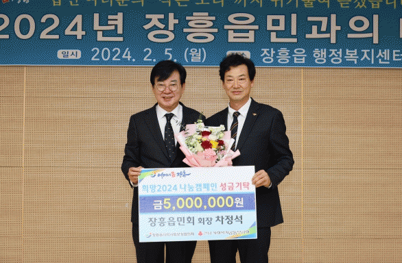 [HKSÇàÁ¤¹æ¼Û]ÀåÈïÀ¾ Áö¿ª»çȸº¸ÀåÇùÀÇü´Â Áö³ 5ÀÏ ±º¹Î°úÀÇ ´ëÈ¿¡¼ Â÷Á¤¼® ÀåÈïÀ¾¹ÎȸÀå°ú ÀåÈïÀü±â, Á¤Åä°Ç¼³¿¡¼ ÃÑ 1õ¸¸ ¿øÀÇ ÀÌ¿ôµ½±â ¼º±ÝÀ» ±âŹÇß´Ù°í ¹àÇû´Ù.
