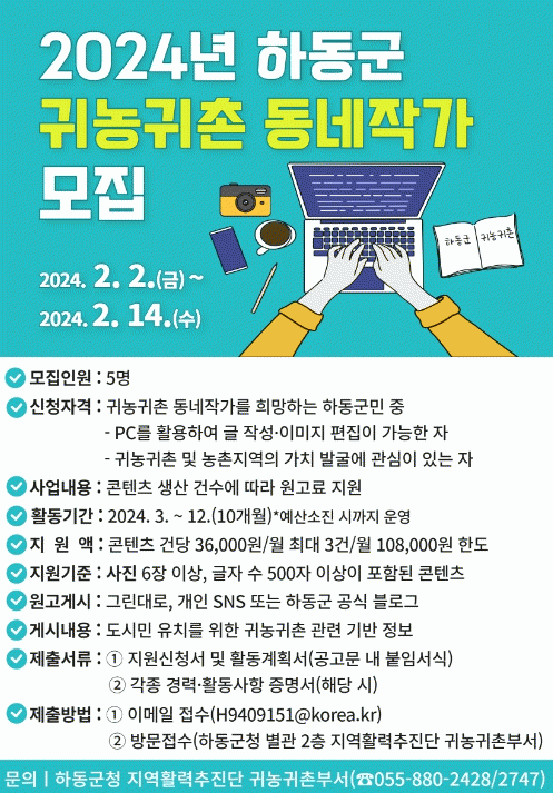 [¿µ³²±Ç] Çϵ¿±º 2024³â¡®±Í³ó±ÍÃÌ ¾Ë¸²ÀÌ¡¯µ¿³×ÀÛ°¡ ¸ðÁý |2024. 02.06