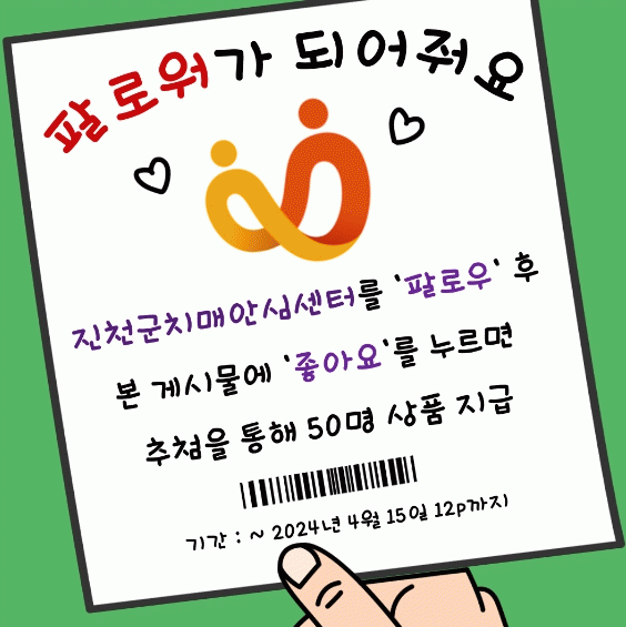 [HKSÇàÁ¤¹æ¼Û]ÁøÃµ±º Ä¡¸Å¾È½É¼¾ÅÍ´Â ¿À´Â 4¿ù 15ÀϱîÁö ¡®ÆÈ·Î¿ö°¡ µÇ¾îÁà¿ä¡¯ ¼Ò¼È ³×Æ®¿öÅ©(SNS) À̺¥Æ®¸¦ ÁøÇàÇÑ´Ù°í 6ÀÏ ¹àÇû´Ù.