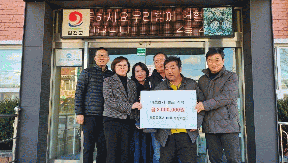 [HKSÇàÁ¤¹æ¼Û] ÇÕõ±º ÀûÁßÁßÇб³ Á¦16ȸ µ¿Ã¢È¸¿øµéÀº Áö³ 2ÀÏ ÀûÁ߸é»ç¹«¼Ò¸¦ ¹æ¹®ÇØ °ü³» ¾î·Á¿î ¼¼´ë¸¦ À§ÇØ ÀÌ¿ôµ½±â ¼º±Ý 200¸¸¿øÀ» ±âŹÇß´Ù. ±âºÎ¿¡ Âü¿©ÇÑ µ¿Ã¢ ȸ¿øµéÀº ¡°¿©·¯ »çÀ¯·Î ¾î·Á¿òÀ» °Þ´Â Ä£±¸¿Í ÀÌ¿ôµé¿¡°Ô Á¶±Ý¡¦