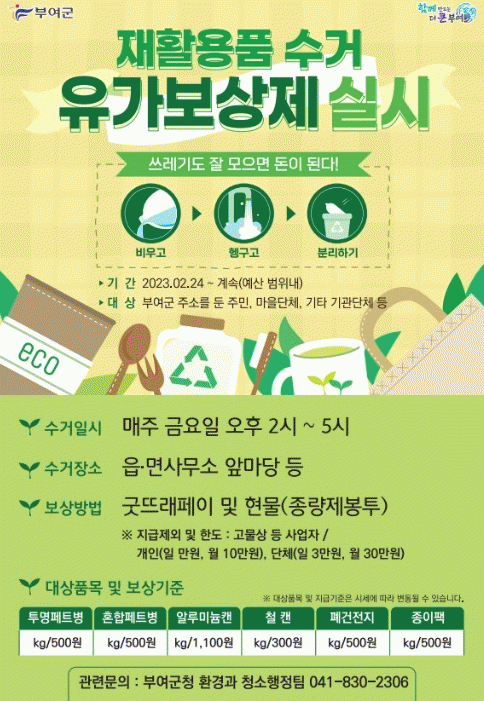 [ÃæÃ»±Ç] ºÎ¿©±º, ¡®¾²·¹±âµµ µ·ÀÌ µÈ´Ù.¡¯ ÀçȰ¿ëǰ ¼ö°Å À¯°¡º¸»óÁ¦ Á¤Âø |2024. 02.02