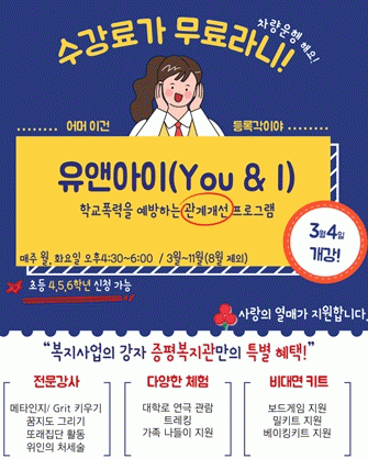 [HKSÇàÁ¤¹æ¼Û]ÁõÆòÁ¾ÇÕ»çȸº¹Áö°üÀÌ 3¿ùºÎÅÍ 11¿ù±îÁö Çб³Æø·ÂÀ» ¿¹¹æÇÏ´Â °ü°è°³¼± ÇÁ·Î±×·¥ÀÎ À¯¾Ø¾ÆÀ̸¦ ÁøÇàÇÑ´Ù.