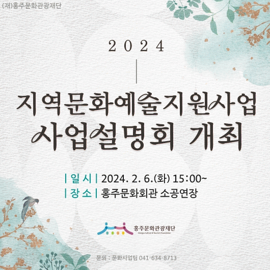 [ÃæÃ»±Ç] È«ÁÖ¹®È°ü±¤Àç´Ü '2024³â Áö¿ª¹®È¿¹¼úÁö¿ø»ç¾÷' ¼³¸íȸ ½Ç½Ã |2024. 02.01