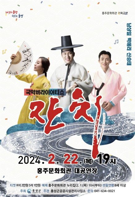 [HKSÇàÁ¤¹æ¼Û]È«¼º±º È«ÁÖ¹®Èȸ°üÀº °©Áø³âÀ» ¸Â¾Æ È«¼º±º¹ÎÀÇ Çà¿îÀ» ±â¿øÇÏ´Â ±¹¾Ç¹ö¶óÀÌ¾îÆ¼¼î ¡®ÀÜÄ¡¡¯¸¦ ¿À´Â 22ÀÏ(¸ñ) ¿ÀÈÄ 7½Ã ´ë°ø¿¬Àå ¹«´ë¿¡ ¿Ã¸°´Ù.