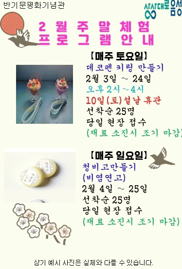 [ÃæÃ»±Ç] À½¼º±º ¹Ý±â¹® Æòȱâ³ä°ü, °ü¶÷°´ ´ë»ó 2¿ù ÁÖ¸» üÇè ÇÁ·Î±×·¥ ¿î¿µ |2024. 02.01