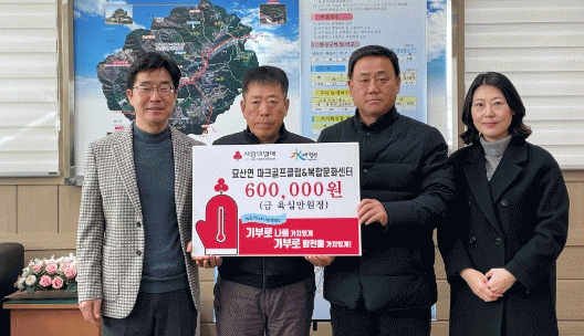 [HKSÇàÁ¤¹æ¼Û]ÇÕõ±º ¹¦»ê¸é ÆÄÅ©°ñÇÁŬ·´(ȸÀå Çѱ¸¼®)°ú º¹ÇÕ¹®È¼¾ÅÍ(À§¿øÀå ÀÌÁ¾°©)´Â 29ÀÏ ¹¦»ê¸é»ç¹«¼Ò¸¦ ¹æ¹®ÇØ ÀÌ¿ôµ½±â ¼º±Ý 60¸¸¿øÀ» ±âŹÇß´Ù. Çѱ¸¼® ȸÀåÀº ¡°ÀÛÀº Á¤¼ºÀÌÁö¸¸ ÁÖº¯ÀÇ ¾î·Á¿î ÀÌ¿ôµéÀÌ µû¶æÇÏ°Ô °Ü¿ïÀ» º¸³¾¡¦