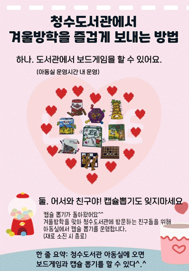 [HKSÇàÁ¤¹æ¼Û]õ¾È û¼öµµ¼°üÀº ¡®³¯¸¶¸¶´Ù Áñ°Ì°Ô¡¯ º¸µå°ÔÀÓ ÇÁ·Î±×·¥À» ¿î¿µÇÑ´Ù°í 29ÀÏ ¹àÇû´Ù. À̹ø º¸µå°ÔÀÓ ÇÁ·Î±×·¥Àº ³îÀ̹®È º¸±Þ µîÀ» À§ÇØ ÃßÁøµÇ¸ç Çѱ۰ÔÀÓ ¡®¶ó¿Â¡¯µî ´Ù¾çÇÑ º¸µå°ÔÀÓÀ» ºñÄ¡ÇØ ´©±¸³ª ÀÌ¿ëÀÌ °¡´ÉÇÏ´Ù¡¦