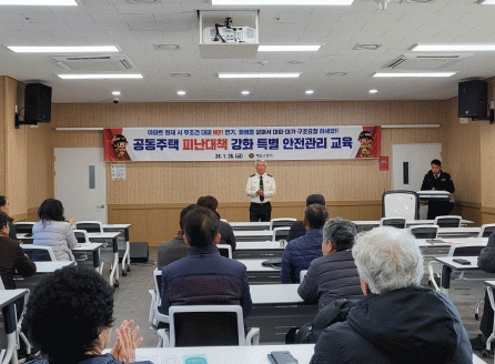 [HKSÇàÁ¤¹æ¼Û]ÇØ³²¼Ò¹æ¼´Â 26ÀÏ °ü³» °øµ¿ÁÖÅà °ü°èÀÎ(°ü¸®¼ÒÀå, ¼Ò¹æ¾ÈÀü°ü¸®ÀÚ)À» ´ë»ó(¾à 30¿©¸í)À¸·Î ÇØ³²°¡Á·¾î¿ï¸²¼¾ÅÍ 4Ãþ ¼ÒȸÀǽǿ¡¼ ÈÀç¾ÈÀü ¼ÒÁý ±³À°À» ½Ç½ÃÇß´Ù°í ¹àÇû´Ù. ÃÖ±Ù ºó¹øÈ÷ ¹ß»ýÇÏ´Â ¾ÆÆÄÆ® ÈÀç·Î ÀÎÇÑ ÀÎ¸í¡¦