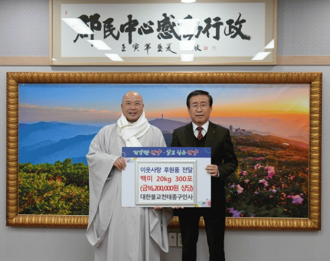 [HKSÇàÁ¤¹æ¼Û]´ëÇѺұ³ÃµÅÂÁ¾ ±¸Àλç´Â Áö³ 23ÀÏ ÃæºÏ»çȸº¹Áö°øµ¿¸ð±Ýȸ¸¦ ÅëÇØ ´Ü¾ç±º¿¡ ¹é¹Ì 20kg, 300Æ÷(1,620¸¸ ¿ø »ó´ç)¸¦ ±âŹÇß´Ù.