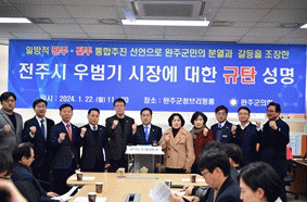 [È£³²±Ç] ¿ÏÁÖ±ºÀÇȸ, ¿ì¹ü±â ÀüÁÖ½ÃÀå¿¡ ³¯¼± ºñÆÇ...¡°¸Á¹ß Áï°¢ öȸÇÏ¶ó¡± |2024. 01.22