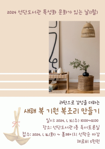[¼öµµ±Ç] Æ÷õ½Ã ¼±´Üµµ¼°ü, 2024³â Ư¼ºÈ '¹®È°¡ ÀÖ´Â ³¯' ÇÁ·Î±×·¥ ¿î¿µ |2024. 01.19