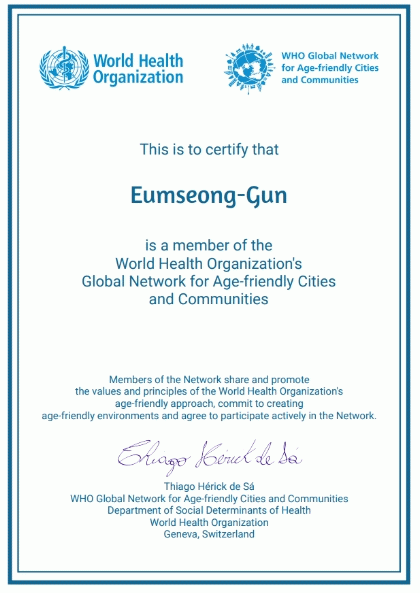 [HKSÇàÁ¤¹æ¼Û]À½¼º±º(ÀÌ Áö³ 15ÀÏ ÃæºÏ ÃÖÃÊ·Î ¼¼°èº¸°Ç±â±¸(WHO)·ÎºÎÅÍ, ¡®°í·Éģȵµ½Ã ±¹Á¦³×Æ®¿öÅ©(Global Network of Age-Friendly Cities&Communities, GNAFCC)¡¯ °¡ÀÔ ÀÎÁõÀ» ¹Þ¾Ò´Ù°í ¹àÇû´Ù.