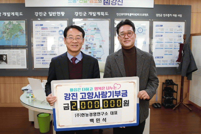 [HKSÇàÁ¤¹æ¼Û]»õÇØ¸¦ ¸Â¾Æ °íÇâ»ç¶û±âºÎ Çà·ÄÀÌ À̾îÁö°í ÀÖ´Â °¡¿îµ¥ (ÁÖ)Çö³ó°æ¿µ¿¬±¸¼Ò ¹é¹Î¼® ´ëÇ¥°¡ ÃÖ±Ù °Áø±º¿¡ 200¸¸¿øÀ» ±âºÎÇß´Ù.