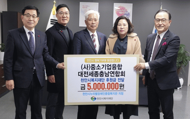[HKSÇàÁ¤¹æ¼Û]Áß¼Ò±â¾÷À¶ÇÕ ´ëÀü¼¼Á¾Ãæ³²¿¬ÇÕȸ´Â 16ÀÏ Ãµ¾È½Ã Àå¾ÖÀÎ Ãë¾à°èÃþÀ» À§ÇØ »ç¿ëÇØ ´Þ¶ó¸ç ÈÄ¿ø±Ý 500¸¸ ¿øÀ» õ¾È½Ãº¹ÁöÀç´Ü(ÀÌ»çÀå ÀÌ¿îÇü)¿¡ Àü´ÞÇß´Ù.