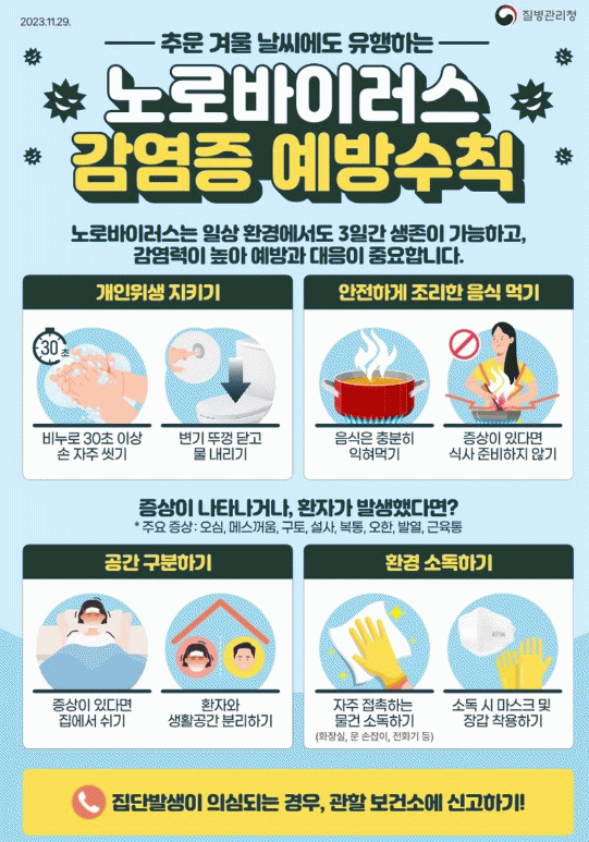 [HKSÇàÁ¤¹æ¼Û]ÁøÁֽô Ãʰܿ£¼ À̵ëÇØ º½(11¿ù ºÎÅÍ 4¿ù)¿¡ ÁÖ·Î ¹ß»ýÇÏ´Â ³ë·Î¹ÙÀÌ·¯½º(Norovirus) °¨¿°Áõ ¿¹¹æÀ» À§ÇÏ¿© °³ÀÎÀ§»ýÀ» öÀúÈ÷ ÇÒ °ÍÀ» ´çºÎÇß´Ù.