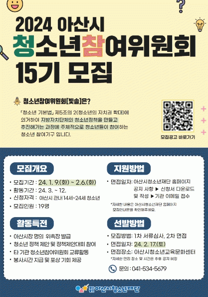 [ÃæÃ»±Ç] ¾Æ»ê½Ã û¼Ò³âÀç´Ü, 2024 ¾Æ»ê½Ã û¼Ò³âÂü¿©À§¿øÈ¸ 'ºû¼Ö' 15±â ½Å±Ô À§¿ø ¸ðÁý |2024. 01.10