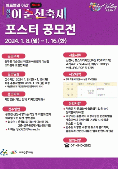 [ÃæÃ»±Ç] '¾ÆÆ®¹ë¸® ¾Æ»ê Á¦63ȸ ¼º¿õ À̼ø½Å ÃàÁ¦ Æ÷½ºÅÍ µðÀÚÀÎ °ø¸ðÀü' °³ÃÖ |2024. 01.10