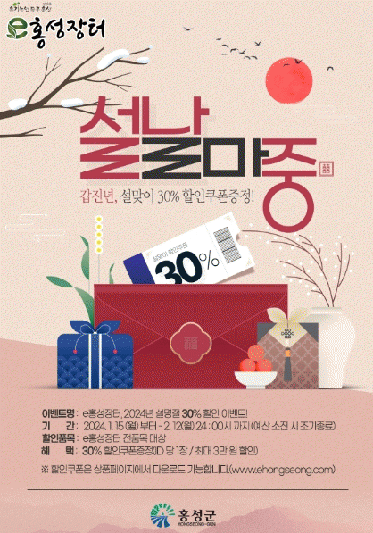 [ÃæÃ»±Ç] È«¼º±º, 'eÈ«¼ºÀåÅÍ' ¼³¸ÂÀÌ Àüǰ¸ñ 30% ÇÒÀÎ |2024. 01.10