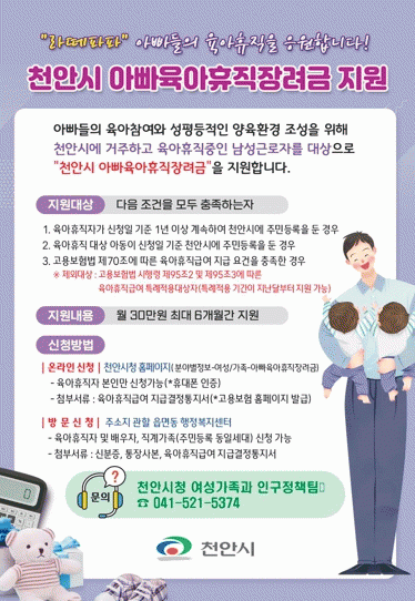[HKSÇàÁ¤¹æ¼Û]õ¾È½Ã ¡®¾Æºü À°¾ÆÈÞÁ÷ Àå·Á±Ý¡¯ Áö¿ø»ç¾÷À» ÀÌ¿ëÇÏ´Â ³²¼º ±Ù·ÎÀÚ°¡ ÇØ¸¶´Ù Áõ°¡Çϰí ÀÖ´Ù.