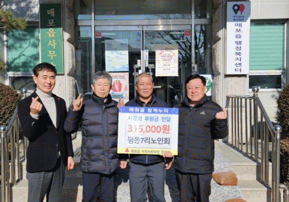 [HKSÇàÁ¤¹æ¼Û]´Ü¾ç±º ¸ÅÆ÷À¾ Æòµ¿7¸® ³ëÀÎȸ(ȸÀå ¾î´ëÁø)Àº ¸ÅÆ÷À¾Áö¿ª»çȸº¸ÀåÇùÀÇü¿¡ »ç¶ûÀÇ ¼º±Ý 315,000¿øÀ» Áö³ 8ÀÏ ±âŹÇß´Ù.