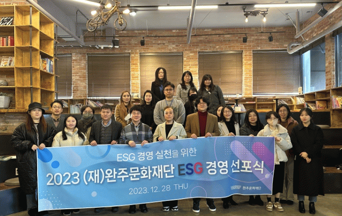 [HKSÇàÁ¤¹æ¼Û](Àç)¿ÏÁÖ¹®ÈÀç´ÜÀº 12¿ù 28ÀÏ º¹ÇÕ¹®ÈÁö±¸ ´©¿¡ ½Ç¸¶¸®È¦¿¡¼ ¡®ESG¡¤À±¸®¡¤À뱂 °æ¿µ ¼±Æ÷½Ä¡¯À» ¿°í ¸ðµç ÀÓÁ÷¿øÀÌ Áö¼Ó °¡´ÉÇÑ °æ¿µ±â¹Ý ¸¶·ÃÀ» À§ÇØ ESG °æ¿µÀ» Àû±ØÀûÀ¸·Î ½ÇõÇÒ °ÍÀ» ¼±¾ðÇß´Ù. ¿ÏÁÖ¹®ÈÀç´Ü ÀÓÁ÷¡¦
