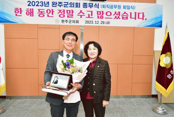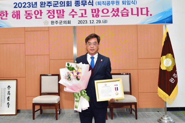 [HKSÇàÁ¤¹æ¼Û]¿ÏÁÖ±ºÀÇȸ´Â 29ÀÏ À̰æ¾Ö ºÎÀÇÀåÀ» ºñ·ÔÇÑ ÀÇ¿øµé°ú ÀÇȸ»ç¹«±¹ Àü Á÷¿øÀÌ Âü¼®ÇÑ °¡¿îµ¥ 31³â°£ÀÇ °øÁ÷ »ýȰÀ» ¸¶¹«¸®ÇÏ´Â ¿ÀÀμ® »ç¹«±¹Àå¿¡ ´ëÇÑ ÅðÀÓ½ÄÀ» °³ÃÖÇß´Ù. ÀÌ´Â ¿ÏÁÖ±ºÀÇȸ Àλç±Ç µ¶¸³ ÀÌÈÄ Ã¹ ÅðÀÓ Çà»ç´Ù.¡¦