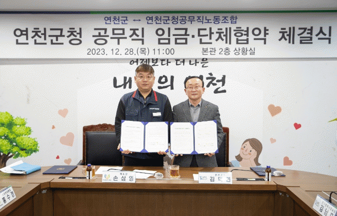 [HKSÇàÁ¤¹æ¼Û]¿¬Ãµ±ºÃ»°ú ¿¬Ãµ±ºÃ»°ø¹«Á÷³ëµ¿Á¶ÇÕÀÇ 2023³â Àӱݡ¤´ÜüÇù¾à ü°á½ÄÀÌ 12¿ù 28ÀÏ ¿¬Ãµ±ºÃ» »óȲ½Ç¿¡¼ °³ÃÖÇß´Ù.