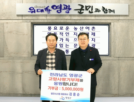 [HKSÇàÁ¤¹æ¼Û]¹üÁø½Ã½ºÅÛ ±èÈï¼ø ´ëÇ¥°¡ Áö³ 27ÀÏ ¿µ±¤±ºÀ» ¹æ¹®ÇÏ¿© °íÇâ»ç¶û±âºÎ±Ý ÃÖ°í¾×ÀÎ 5¹é¸¸ ¿øÀ» ±âºÎÇÏ¿© ¿µ±¤±º °íÇâ»ç¶û±âºÎ¿¡ µ¿ÂüÇß´Ù.