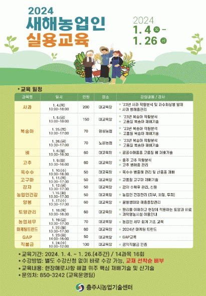 [ÃæÃ»±Ç] ÃæÁÖ³ó±â¼¾ÅÍ, 2024³â '»õÇØ³ó¾÷ÀÎ ½Ç¿ë±³À°' ÃßÁø |2023. 12.28