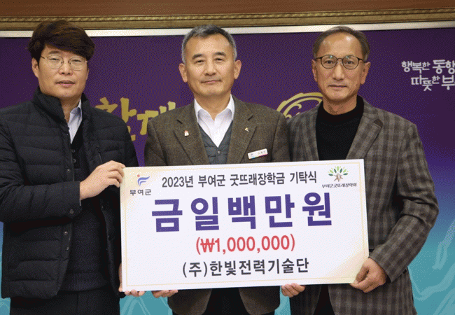 [HKSÇàÁ¤¹æ¼Û]¢ßÇѺûÀü·Â±â¼ú´ÜÀº ÃÖ±Ù ºÎ¿©±ºÃ»À» ¹æ¹®ÇØ Áö¿ªÀÎÀç À°¼ºÀ» À§ÇÑ ÀåÇÐ±Ý 100¸¸¿øÀ» (Àç)ºÎ¿©±º±Â¶ß·¡ÀåÇÐȸ¿¡ ±âŹÇß´Ù.