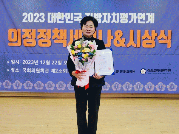 [ÃæÃ»±Ç] ¿¹»ê±ºÀÇȸ ±èűÝÀÇ¿ø, 2023³â Àü±¹ Áö¹æÀÚÄ¡ ÀÇÁ¤Á¤Ã¥ºÎ¹® 2³â ¿¬¼Ó ¡®´ë»ó¡¯ ¼ö»ó |2023. 12.22