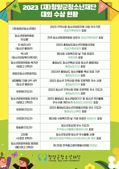 [ÃæÃ»±Ç] û¾ç±º û¼Ò³âÀç´Ü ¿©°¡ºÎ Àå°ü»ó µî 14ȸ ¼ö»ó |2023. 12.21