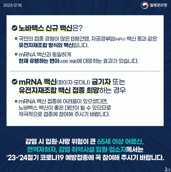 [ÃæÃ»±Ç] ´Ü¾ç±º, µ¿Àý±â ´ëºñ Äڷγª19 ¿¹¹æÁ¢Á¾ Àû±Ø µ¶·Á |2023. 12.21