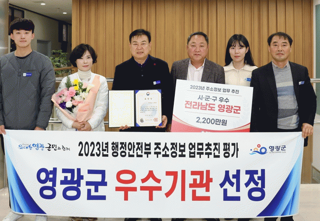 [HKSÇàÁ¤¹æ¼Û]¿µ±¤±ºÀÌ Áö³ 14ÀÏ ÇàÁ¤¾ÈÀüºÎ ÁÖ°ü ¡®2023³â ÁÖ¼ÒÁ¤º¸ ¾÷¹«ÃßÁø Æò°¡¡¯¿¡¼ ¿ì¼ö±â°üÀ¸·Î ¼±Á¤µÇ´Â Äè°Å¸¦ °Åµ×À¸¸ç, ºÎ»óÀ¸·Î Ưº°±³ºÎ¼¼ 2,200¸¸ ¿øÀ» ¼ö»óÇß´Ù°í ¹àÇû´Ù.