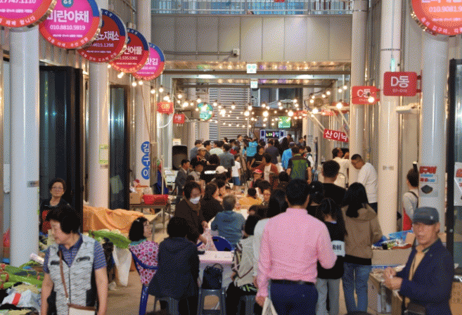 ¸ÅÀϽÃÀå »óÀÎȸ¿¡¼ ½ÃÀå ÀÔ±¸¿¡ Å©¸®½º¸¶½º Æ®¸®¿Í »êŸ Á¶Çü¹° µîÀ» ¼³Ä¡ÇØ ¹æ¹®°´µéÀ» ¸Â°í ÀÖ´Â °¡¿îµ¥ 18ÀϺÎÅÍ´Â ½ÃÀå 2Ãþ¡¦ |