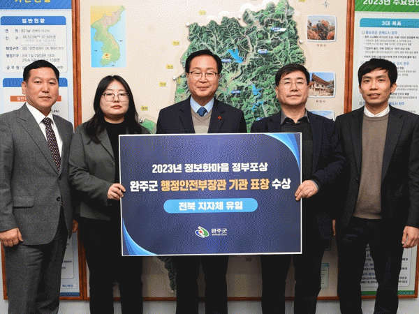 [HKSÇàÁ¤¹æ¼Û]¿ÏÁÖ±ºÀÌ 2023³â Á¤º¸È ¸¶À» Á¶¼º ¹× ¿î¿µ À¯°ø±â°üÀ¸·Î ¼±Á¤µÅ ÇàÁ¤¾ÈÀüºÎ Àå°ü ǥâÀ» ¹Þ¾Ò´Ù.
