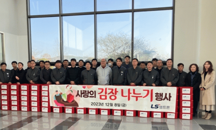 [HKSÇàÁ¤¹æ¼Û]¿ÏÁÖ»ê¾÷´ÜÁö ³» LS¿¥Æ®·Ð ¿ÏÁÖ°øÀåÀÌ ³ë»ç°¡ Çù·ÂÇØ ¼Õ¼ö ´ã±Ù ±èÀå±èÄ¡ 50¹Ú½º¸¦ ¿ÏÁÖ±º Àú¼Òµæ°¡±¸¿¡ Àü´ÞÇß´Ù.