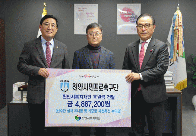 [HKSÇàÁ¤¹æ¼Û]õ¾È½Ãº¹ÁöÀç´ÜÀº Áö³ 11ÀÏ Ãµ¾È½Ã¹ÎÇÁ·ÎÃ౸´ÜÀÌ Ãµ¾ÈÁö¿ª Ãë¾à°èÃþ Áö¿øÀ» À§ÇØ ÈÄ¿ø±Ý 486¸¸7,200¿øÀ» Àü´ÞÇß´Ù°í ¹àÇû´Ù.