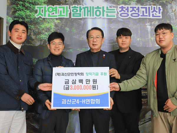 [HKSÇàÁ¤¹æ¼Û]ÃæºÏ ±«»ê±º4-H¿¬ÇÕȸ´Â 8ÀÏ ±«»ê±º¹ÎÀåÇÐȸ¿¡ ÀåÇбâ±Ý 300¸¸ ¿øÀ» ±âŹÇß´Ù. ±è¼º±Ô ȸÀåÀº ¡°¿ì¸® ³óÃÌ Ã»¼Ò³âµéÀÌ °Ç°Çϰí ÈǸ¢ÇÏ°Ô ¼ºÀåÇØ °¡Ä¡°ü È®¸³°ú Áø·Î °áÁ¤¿¡ º¸ÅÆÀÌ µÆÀ¸¸é ÇÑ´Ù¡±°í ¸»Çß´Ù. ¼ÛÀÎÇå ±º¼ö´Â¡¦