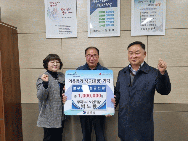 [HKSÇàÁ¤¹æ¼Û]À½¼º±º ±Ý¿ÕÀ¾ ¹«±Ø3¸® ¹Ú³ë·® ³ëÀÎȸÀåÀº Áö³ 7ÀÏ ±Ý¿ÕÀ¾ ÇàÁ¤º¹Áö¼¾Å͸¦ ¹æ¹®ÇØ ¾î·Á¿î ÀÌ¿ôÀ» À§ÇØ »ç¿ëÇØ ´Þ¶ó¸ç 100¸¸¿øÀ» ±âŹÇß´Ù. ¹Ú³ë·® ¹«±Ø3¸® ³ëÀÎȸÀåÀº ¡°±Ý¿ÕÀ¾ÀÇ ¾î·Á¿î ÀÌ¿ôÀ» À§ÇØ Á¶±ÝÀ̳ª¸¶ º¸ÅÆÀÌ µÇ¡¦