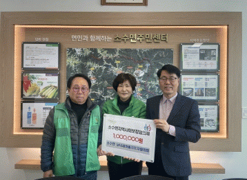 [HKSÇàÁ¤¹æ¼Û]¼Ò¼ö¸é ³²³à»õ¸¶À»ÁöµµÀÚÇùÀÇȸ´Â 7ÀÏ Áö¿ª ³» ¼Ò¿ÜµÈ ÀÌ¿ôµéÀ» À§ÇÑ ÈÄ¿ø±Ý 100¸¸ ¿øÀ» ¼Ò¼ö¸éÁö¿ª»çȸº¸ÀåÇùÀÇü¿¡ Àü´ÞÇß´Ù. ±èÇà°ü »õ¸¶À»ÁöµµÀÚȸÀåÀº ¡°È¸¿øµéÀÇ µû¶æÇÑ °ü½É°ú ¾ÖÁ¤À» ¸ð¾Æ ±âºÎ±ÝÀ» Àü´ÞÇÏ°Ô µÆ´Ù¡±¡¦
