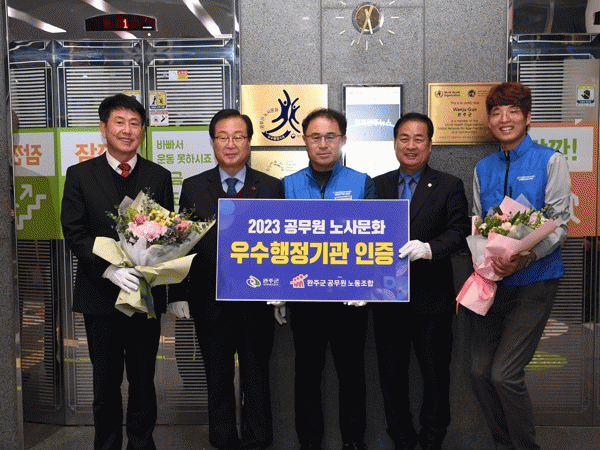 [HKSÇàÁ¤¹æ¼Û]¿ÏÁÖ±ºÀÌ °ÇÀüÇÑ °ø¹«¿ø ³ë»ç¹®È Á¤Âø¿¡ ´ëÇÑ ³ë·ÂÀ» ÀÎÁ¤¹Þ¾Æ ¡®°ø¹«¿ø ³ë»ç¹®È ¿ì¼öÇàÁ¤±â°ü¡¯ ÀÎÁõÆÐ¸¦ ¼ö¿© ¹Þ¾Ò´Ù. ¶ÇÇÑ, ³ë»ç¹®È¿¡ ±â¿©ÇÑ °øÀûÀ» ÀÎÁ¤¹Þ¾Æ À̿ ¿ÏÁÖ±º °ø¹«¿ø³ëµ¿Á¶ÇÕ À§¿øÀåÀÌ ´ëÅë·É °³ÀÎÇ¥¡¦