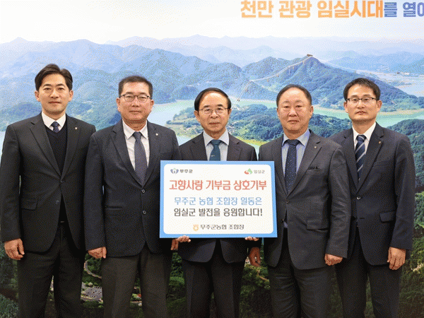 [HKSÇàÁ¤¹æ¼Û]¹«ÁÖ Áö¿ª³óÇù ¼Ò¼Ó ¹«ÁÖ³óÇù °ûµ¿¿ Á¶ÇÕÀå, ±¸Ãµµ¿³óÇù ±è¼º°ï Á¶ÇÕÀåÀÌ °¢ 50¸¸¿ø¾¿ ÃÑ 1¹é¸¸¿øÀ» ÀӽDZº¿¡ °íÇâ»ç¶û±âºÎ±ÝÀ» ±âºÎÇß´Ù°í 6ÀÏ ¹àÇû´Ù. À̹ø ±âºÎ´Â µÎ Áö¿ª °£ »óÈ£±âºÎ¸¦ ÅëÇØ ¿ìÈ£¸¦ ´ÙÁö°í °íÇâ»ç¶û±â¡¦