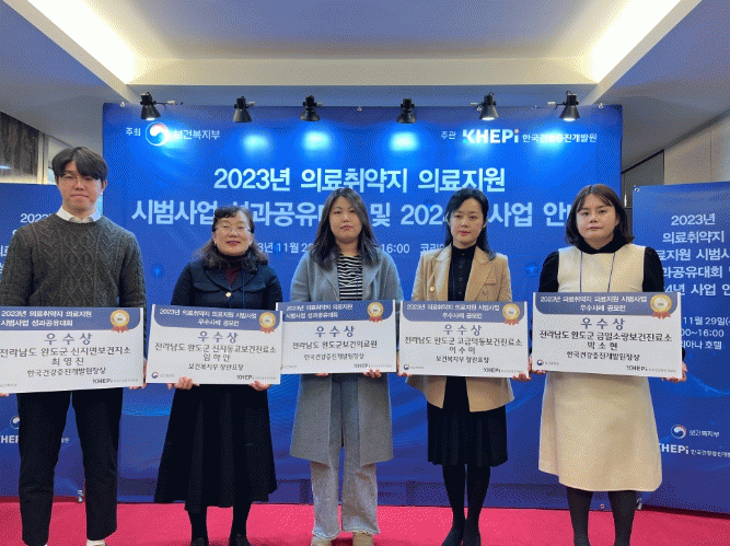 [HKSÇàÁ¤¹æ¼Û]¿Ïµµ±ºº¸°ÇÀÇ·á¿øÀº Áö³ 11¿ù 29ÀÏ ¿¸° '2023³â ÀÇ·á Ãë¾àÁö ÀÇ·áÁö¿ø ½Ã¹ü»ç¾÷' Àü±¹ ¼º°ú °øÀ¯´ëȸ¿¡¼ ¿ì¼ö»ó(Çѱ¹°Ç°ÁõÁø°³¹ß¿øÀå»ó)À» ¼ö»óÇß´Ù. °³ÀÎ ºÎ¹®À¸·Î º¸°Çº¹ÁöºÎÀå°ü»ó(3¸í), Çѱ¹°Ç°ÁõÁø°³¹ß¿øÀå»ó(2¸í¡¦