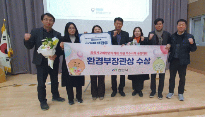 [HKSÇàÁ¤¹æ¼Û] õ¾È½Ã´Â Ãֱ٠ȯ°æºÎ ÈÇй°Áú¾ÈÀü¿øÀÌ ÁÖÃÖÇÑ ¡®Á¦3ȸ ÈÇлç°í ¿¹¹æ°ü¸®°èȹÀÌÇà ¿ì¼ö»ç·Ê °øÀ¯´ëȸ¡¯¿¡¼ ȯ°æºÎÀå°ü»óÀ» ¼ö»óÇß´Ù°í 5ÀÏ ¹àÇû´Ù. ¿ì¼ö»ç·Ê °øÀ¯´ëȸ´Â ÈÇй°Áú ¾ÈÀü¹®È Á¤ÂøÀ» À§ÇØ ±â¾÷ÀÇ Æ¯¼º¡¦