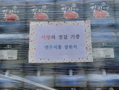 [HKSÇàÁ¤¹æ¼Û]À翵³«¿ù¸éÇâ¿ìȸÀå Àå¿ø¼ ¿¬¼ö½Äǰ ´ëÇ¥´Â Áö³ 1ÀÏ °íÇâ ÁֹεéÀÇ ±èÀå ±èÄ¡¿¡ µµ¿òÀ» ÁÖ±â À§ÇÏ¿© ³«¿ù¸é¿¡ °¥Ä¡ ¾×Á£ 180ÅëÀ» ±âÁõÇß´Ù. ±º¼³ó°ø´ÜÁö¿¡ À§Ä¡ÇÑ ¿¬¼ö½ÄǰÀº 1993³â ¼³¸³ÇÑ ÀÌ·¡ ½Å¼±ÇÑ Àç·á¸¸À» ¾ö¼±¡¦