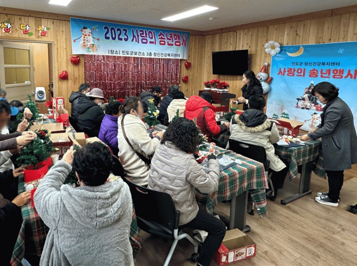 [HKSÇàÁ¤¹æ¼Û]Áøµµ±º º¸°Ç¼Ò°¡ ¿¬¸»À» ¸Â¾Æ 2023³â »ç¶ûÀÇ ¼Û³âÇà»ç¸¦ °³ÃÖÇß´Ù. À̹ø Çà»ç´Â Á¤½Åµî·Ïȸ¿ø°ú °¡Á·µéÀ» À§·ÎÇÏ°í °øµ¿Ã¼ Ȱµ¿À» ÅëÇØ »çȸº¹±Í¸¦ À§ÇÑ ÀçȰÀÇÁö¿Í ÀڽۨÀ» ½É¾îÁÖ°íÀÚ ¸¶·ÃµÆ´Ù. Á¤½Å°Ç°º¹Áö¼¾ÅÍ¿¡ µî¡¦
