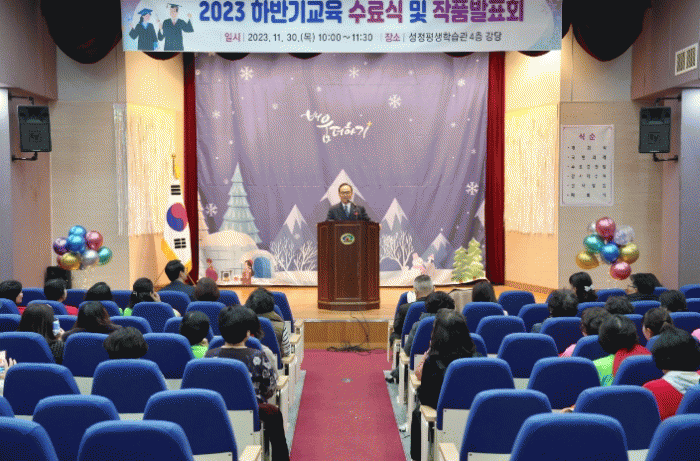 [HKSÇàÁ¤¹æ¼Û] õ¾È½Ã ¼ºÁ¤Æò»ýÇнÀ°üÀº 30ÀÏ 2023³âµµ ÇϹݱ⠱³À°°úÁ¤ ¼ö·á½Ä°ú ÀÛǰ¹ßǥȸ¸¦ °³ÃÖÇß´Ù. ÇϹݱ⠱³À°Àº Æò»ýÇнÀ ±âȸ Á¦°øÀ» À§ÇØ 8¿ù 14ÀÏ °³°À» ½ÃÀÛÀ¸·Î 4°³¿ù°£ ¹®È¿¹¼ú, Àι®±³¾ç, Ãë¹ÌȰµ¿ µî ºÐ¾ßº° ÃÑ 6¡¦