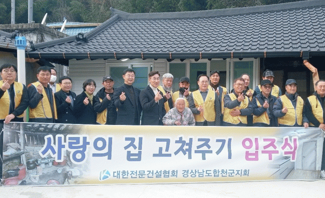 [HKSÇàÁ¤¹æ¼Û]´ëÇÑÀü¹®°Ç¼³Çùȸ °æ»ó³²µµ ÇÕõÁöȸ´Â Áö³ 29ÀÏ ½Ö¹é¸é ´ë»ó°¡±¸¿¡¼ ¡®»ç¶ûÀÇ Áý °íÄ¡±â¡¯ ÀÔÁÖ½ÄÀ» °³ÃÖÇß´Ù. 10¿ù 25ÀϺÎÅÍ ½ÃÀÛµÈ ¡®»ç¶ûÀÇ Áý °íÄ¡±â¡¯´Â Áö³ 1°³¿ù µ¿¾È ȸ¿øµéÀÇ ¶¡°ú ¿Á¤À¸·Î ¹«»çÈ÷ °ø»ç°¡ ¸¶¡¦
