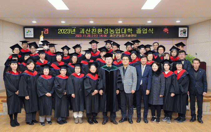[HKSÇàÁ¤¹æ¼Û]ÃæºÏ ±«»ê±ºÀº Áö³ 29ÀÏ ³ó¾÷±â¼ú¼¾ÅÍ ³ó½É°ü¿¡¼ ¡®2023³â ±«»êģȯ°æ³ó¾÷´ëÇС¯ Á¹¾÷½ÄÀ» °³ÃÖÇÏ¸ç ¿ÃÇØ ±³À°À» ¸¶¹«¸®Çß´Ù. À̳¯ Á¹¾÷½ÄÀº ±«»êģȯ°æ³ó¾÷´ëÇÐ ÇÐÀåÀÎ ¼ÛÀÎÇå ±º¼ö¸¦ ºñ·ÔÇØ Á¹¾÷»ý 66¸íÀÌ Âü¼®ÇÑ °¡¿î¡¦